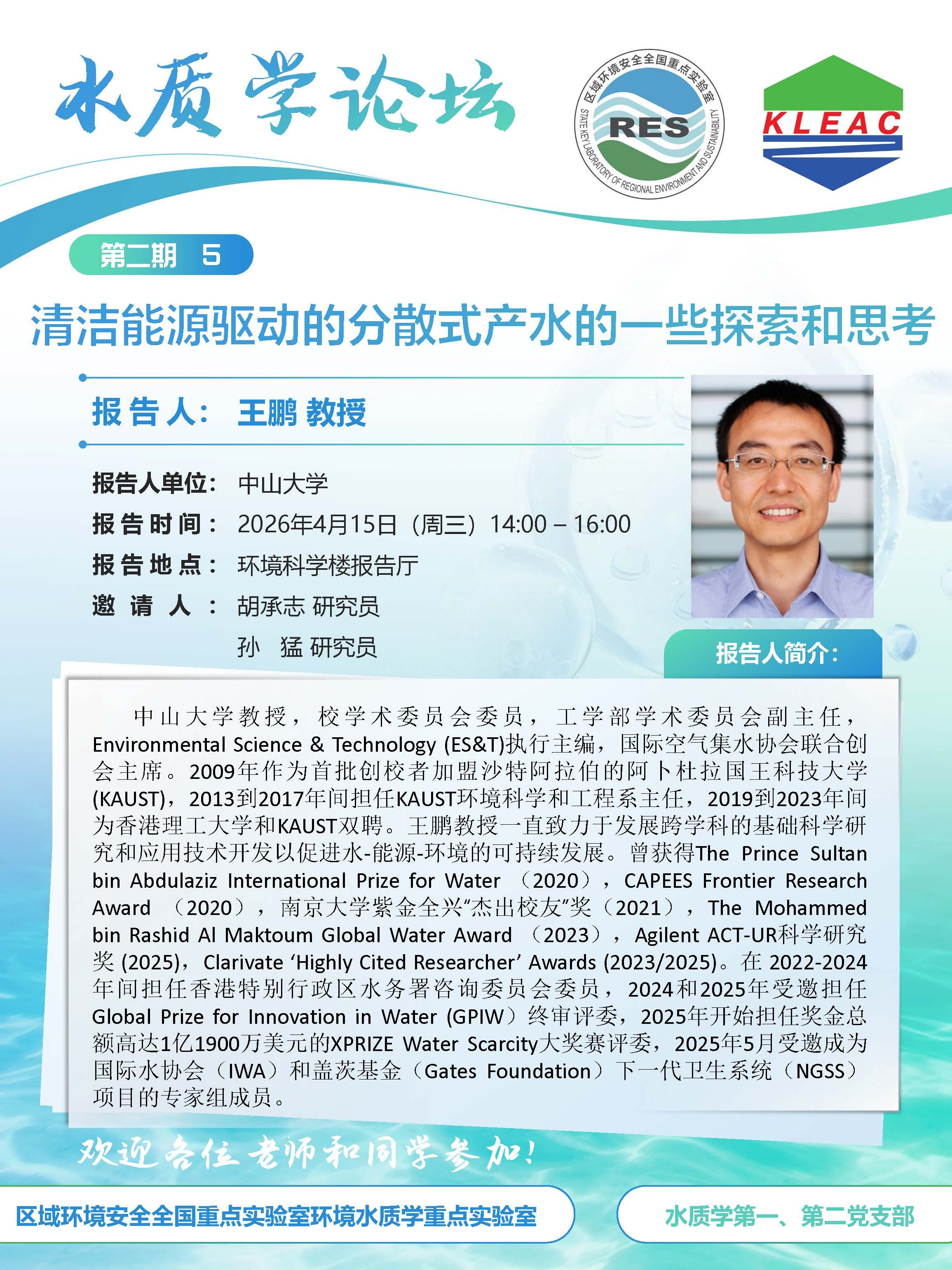 水质学论坛:清洁能源驱动的分散式产水的一些探索和思考